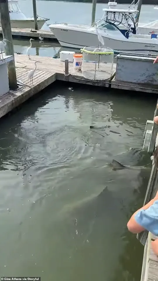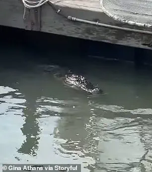 Dozens of onlookers had gathered on a nearby deck, their phones raised, capturing the moment as if it were a scene from a nature documentary gone rogue.