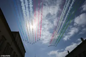 The culmination of today’s ceremonial events came with a breathtaking flypast over Rome’s historic skyline.