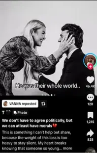 Screenshots and recordings shared online show the 22-year-old influencer reposting a slideshow that features black-and-white images of Kirk, accompanied by captions emphasizing his ‘integrity’ and the ‘weight of this loss.’ The original post, which Einerson shared, was captioned with the line: ‘We don’t have to agree politically, but we can at least have morals.’