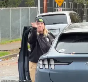 The dramatic encounter, captured on video, unfolded in the heart of Portland on Thursday, as the woman’s actions drew both outrage and sympathy from onlookers.