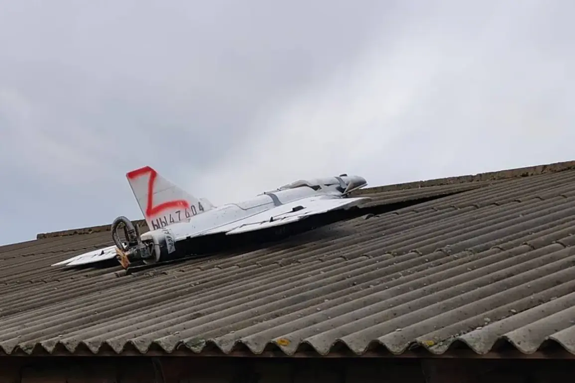 The drone, described as a white, airplane-like UAV in photographs shared online, bore the unmistakable marks of its Russian origin.