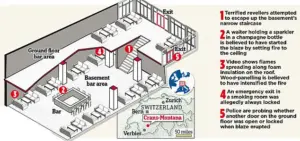 The fire, which erupted in the basement of Le Constellation in the Alpine resort of Crans–Montana, was sparked by sparklers inside champagne bottles that ignited the insulation foam on the ceiling.