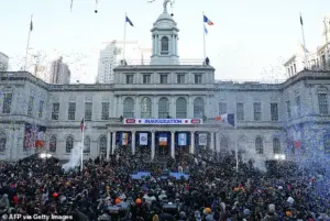 Standing before a crowd of supporters, Mamdani called out the former president by name, accusing him of exploiting tenants and evading taxes. ‘The Donald Trumps of our city have grown far too comfortable taking advantage of their tenants,’ he said, vowing to dismantle the ‘culture of corruption’ that allowed billionaires like Trump to thrive.