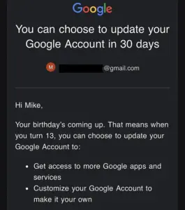 Google has been accused of ‘grooming’ children by emailing them ahead of their 13th birthday with information on how to switch off parental controls.