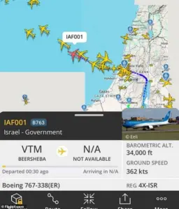 The aircraft, known as the Wing of Zion, has previously left the country ahead of significant military operations, though officials have consistently denied any direct link between its movements and impending action.
