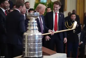 ‘We have a little competition’ with Canada, he added while calling the endeavor the ‘most dominant playoff run in history.’ In addition to the golden stick, the Panthers awarded the president with a jersey emblazoned with the number 47, an ode to Trump serving as the 47th president of the US.