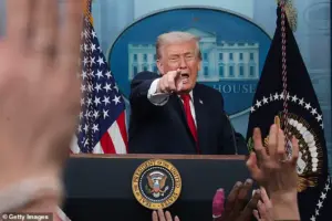 When asked at a lengthy White House briefing about the potential consequences of his actions, Trump merely said, ‘You’ll find out.’ His refusal to provide concrete details has only deepened the uncertainty surrounding his intentions, with analysts warning that the U.S. could face severe diplomatic and economic repercussions if it proceeds with its demands.