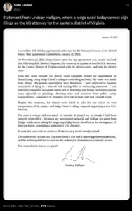 The sudden departure of Lindsey Halligan from her role as interim U.S. attorney for the Eastern District of Virginia has sparked a broader debate about the intersection of executive power, judicial independence, and the rule of law.