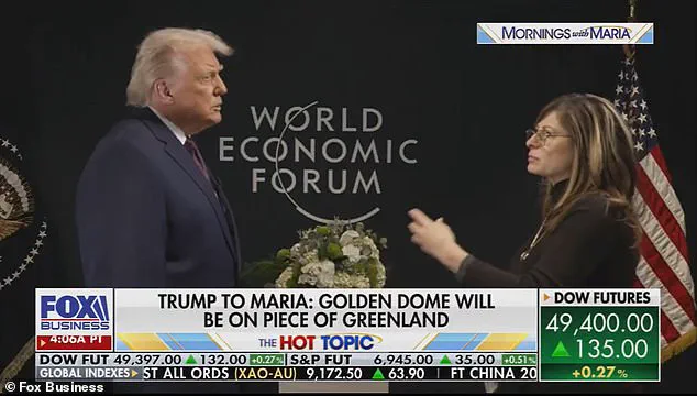 Central to the deal is the deployment of the U.S.’s proposed ‘Golden Dome’ missile defense system, which Trump claimed will be constructed in part on Greenland. ‘If the bad guys start shooting, it comes over Greenland,’ he told Bartiromo, asserting that the system would serve as a bulwark against ballistic threats from adversarial nations.