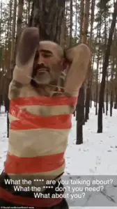 Did I tell you where to go?’ The video, which appears to have been recorded in real-time, shows the soldiers in a state of apparent fear, their only clothing being their underwear, a stark contrast to the heavy winter gear typically issued to troops in such conditions.