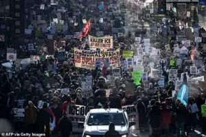 Protestors rioted in front of a Minneapolis Hilton on Sunday night following the fatal shooting of Pretti, a VA and ICU nurse whose sister described him as ‘kind and helpful.’ The incident, which has ignited widespread outrage, occurred amid escalating tensions between local communities and federal immigration enforcement agencies.