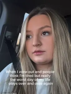 The video, which includes a montage of hospital footage, funeral images, and the accident site, is accompanied by a chilling caption: ‘When I zone out, and people think I’m tired, but the worst day of my life plays over and over again.’