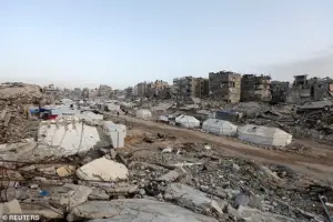 While some are excited about potential economic opportunities, others fear the plan might be ‘disconnected’ from the real needs of Gazans. ‘Any plan that includes reconstruction, job opportunities, and improvements to electricity and water definitely gives us a positive feeling,’ Taysi said. ‘The only fear is that decisions might be made about us without involving the people who live this reality every day.’ This sentiment was echoed by Halima Awad, 54, a displaced resident from Jabalia camp now living in Al-Mawasi near Khan Younis, who warned that rapid solutions or sweeping changes in a short time frame feel detached from the scale of destruction in Gaza.