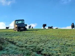 A man’s encounter with an enraged cow near Whitely Bank on the Isle of Wight turned into a harrowing ordeal that ended with a dramatic rescue by firefighters. The incident, which unfolded on a public footpath, began when the dog walker spotted a calf grazing in the field. Moments later, the cow’s mother charged through a nearby fence, forcing the man to scramble into a tree for safety. As he clung to the branches, the animal stood below, its eyes locked on him, a silent warning of the danger he faced. Firefighters from Hampshire and Isle of Wight Fire and Rescue Service arrived on the scene to find the man trapped over 90 minutes after the initial encounter. They worked alongside the cow’s owner, who managed to calm the animal and guide it away, finally allowing the man to descend and reunite with his dog. The incident, while extraordinary, is not isolated, highlighting a broader pattern of cattle-related incidents that continue to pose risks to the public.