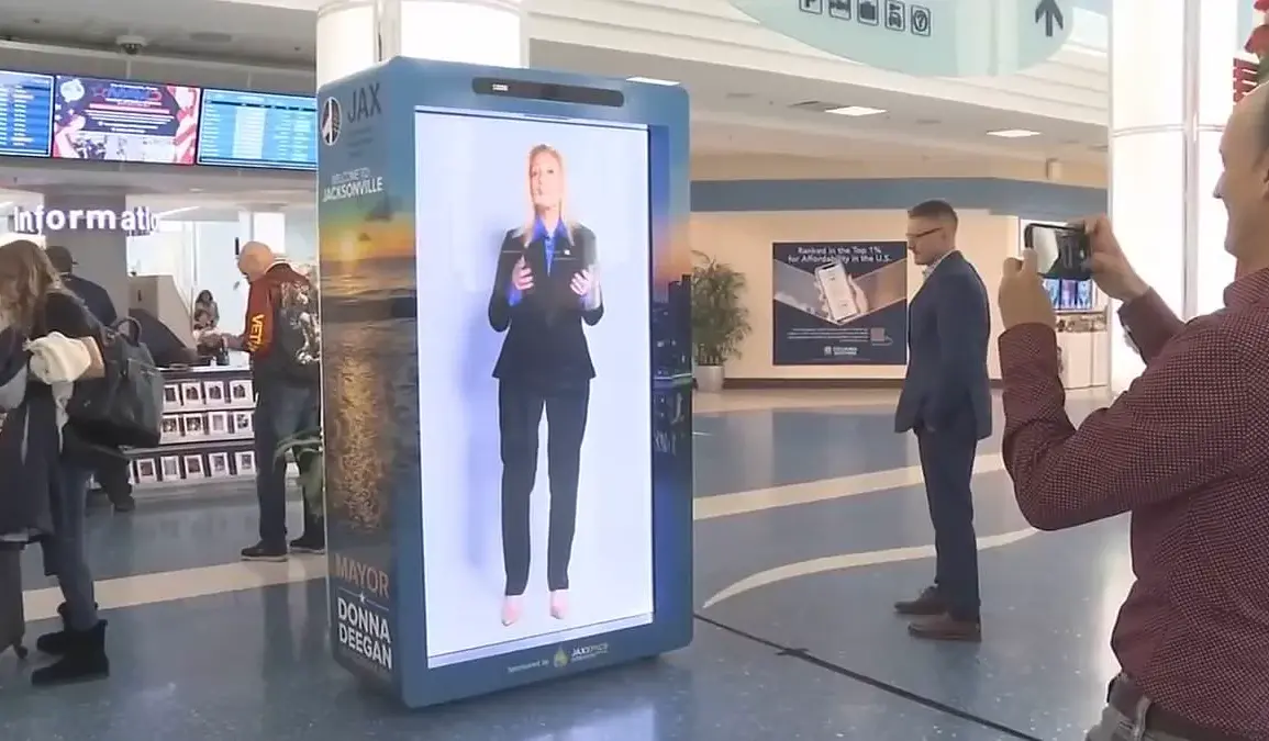The removal of a controversial ‘hologram’ of Jacksonville, Florida’s Mayor Donna Deegan from the Jacksonville International Airport has sparked a heated debate over public expenditure, technological innovation, and the role of local government in adopting cutting-edge solutions. Installed in December 2024, the 3D screen displayed a life-sized video of the Democrat mayor greeting travelers in multiple languages, a project developed by startup Proto. However, the initiative, which initially cost $30,000, escalated to $75,000 by the time of its removal, drawing sharp criticism from state officials and members of the city council. The Florida Department of Government Efficiency, a state-level agency modeled after Elon Musk’s DOGE initiative, condemned the expense as an example of ‘wasteful spending,’ highlighting concerns over fiscal responsibility in local governance.